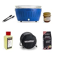 LotusGrill XL – Starter-Set XL Tiefblau, Der raucharme Holzkohlegrill/Tischgrill Neueste Technik mit USB Anschluss (u.a…