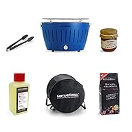 LotusGrill – Starter-Set Tiefblau, Der raucharme Holzkohlegrill/Tischgrill Neueste Technik mit USB Anschluss (u.a. Laden…