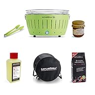 LotusGrill XL – Starter-Set XL Limettengrün, Der raucharme Holzkohlegrill/Tischgrill Neueste Technik mit USB Anschluss…